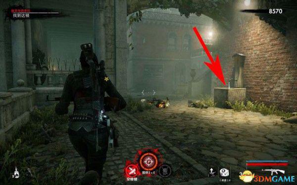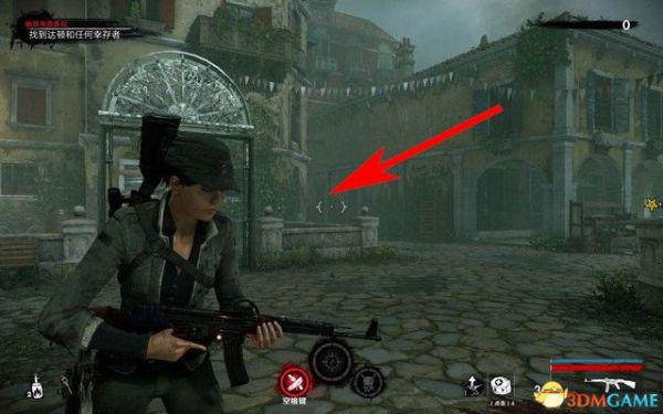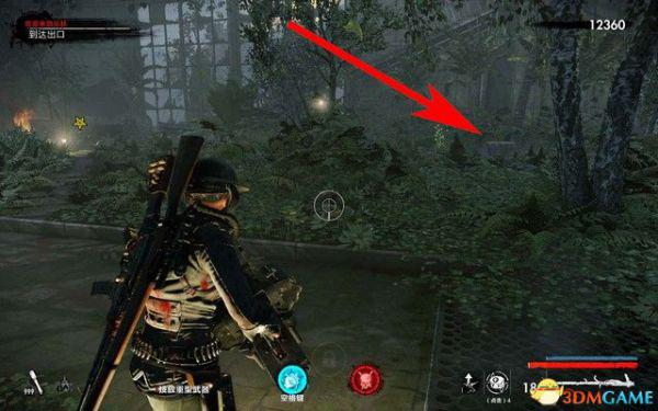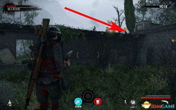 打完僵尸军官后,穿过走廊,院子里,如下图箭头所指,