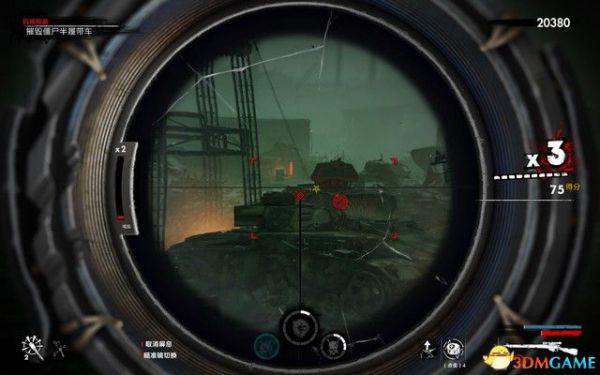 如下图,僵尸之走目标小,而且会移动,需要耐心射击。
