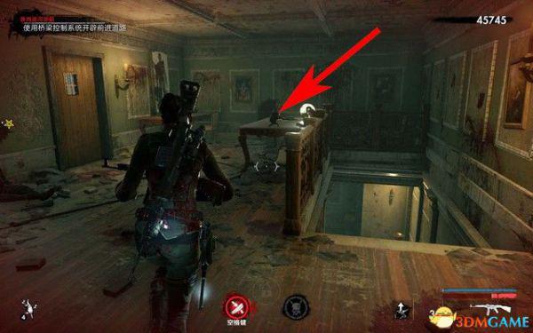 紧接着上图,僵尸之手在二楼的绳子上。
