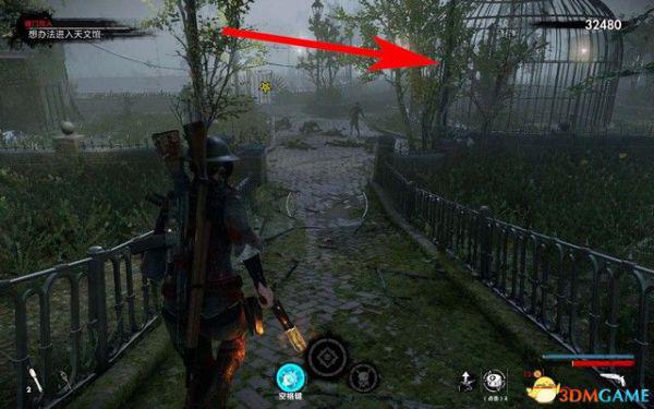 来到动物园,如下图箭头所指,在右侧的笼子里面就有僵尸之手。