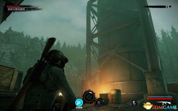 最后一个汽油桶这里还会遇到狙击手,躲进仓库里面利用掩体战斗,