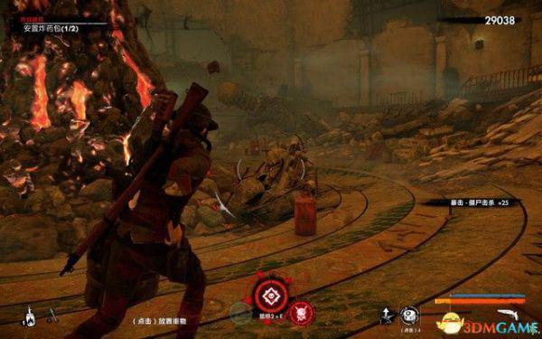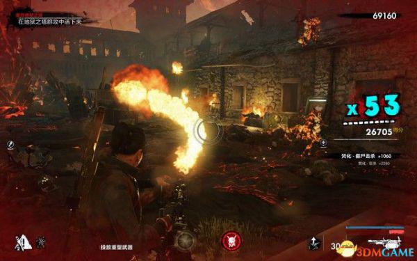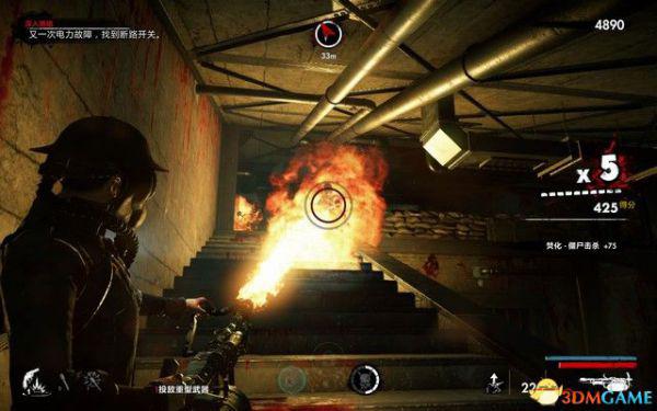 先和僵尸战斗,中途刷喷火兵,处决之后拿起喷火器战斗效率会很高。