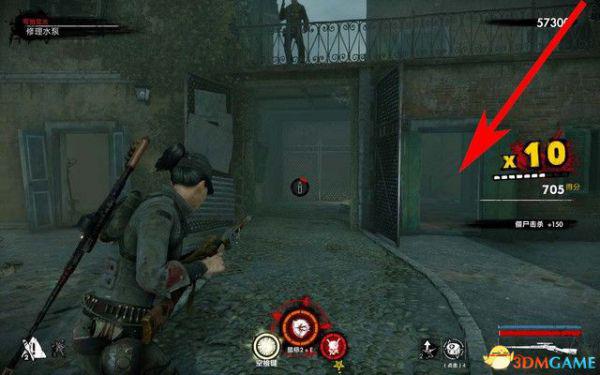 修理水泵的时候会刷大量的僵尸,远距离用狙,近距离用MP44,