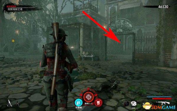 进入墓地,如下图箭头所指,进入右侧第一个墓穴,里面就是升级包。