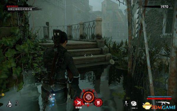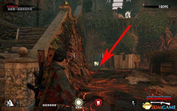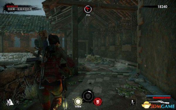 这里僵尸很多,按C踩踏尸体可以刷到弹药和药包。