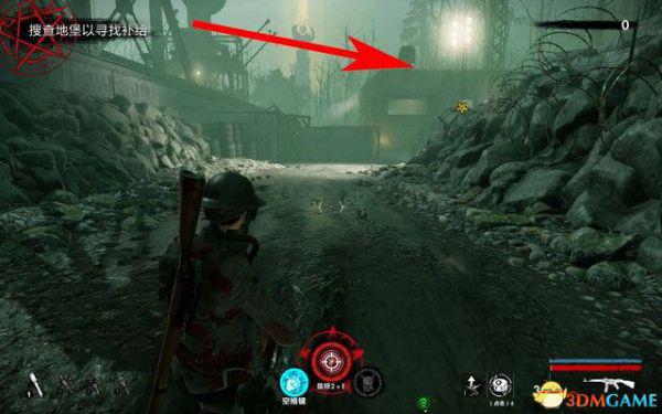 前方可以找打弹药补给,而僵尸之手就在补给箱旁边的地上。