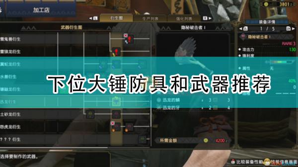 《怪物猎人:崛起》下位大锤防具和武器推荐: