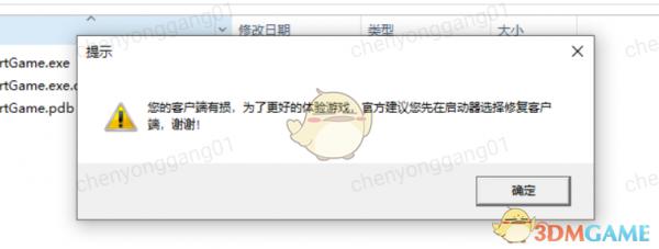 当游戏文件出现缺少、损坏时,您可能会看到如下提示: