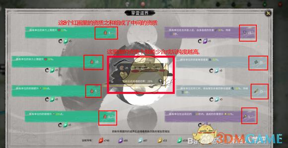 8条全部刷出来之后,每一条后面的资质共同组成中间合成框。