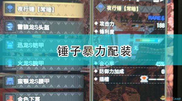 《怪物猎人:崛起》锤子暴力配装就是夜行锤,雷狼头,迅龙身,火龙手,蛮颚腰,金色下裳。配上天雷护石和鬼香花链三朵。下面我们来看看具体配装吧。