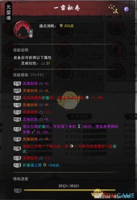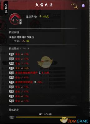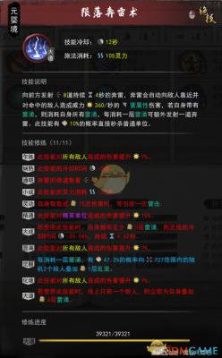 1 奔雷术(场上只有一个人给自己叠六层雷涌,自己雷涌达到3层减34%cd持续五秒)