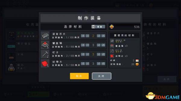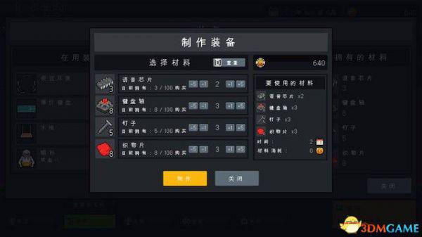 花钱解锁了制作后,就可以使用材料来制作物品了,