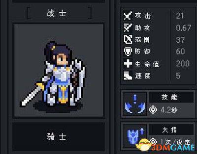 骑士是一种低伤害,高血量,高防御的职业,极其适合作为肉盾,