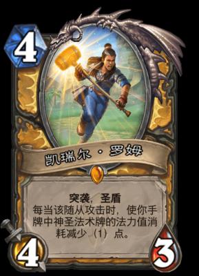 新卡凯瑞尔·罗姆是一张强度爆表的单卡,443圣盾突袭已经很强了,特效对于圣契骑也很强(整个卡组只有古神在上和新生入学不是神圣法术),可以说是完美契合圣契骑。