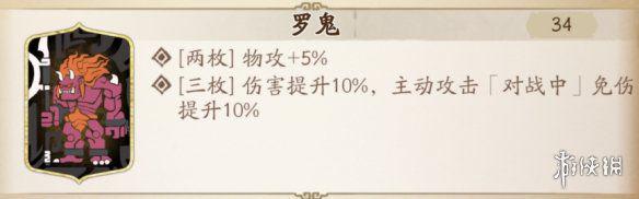罗鬼:物攻+5%,伤害+10%,主动攻击,对战中免伤+10%。