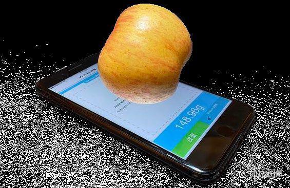 3、打开之后进入称重的界面,这个时候可以将一些可以导电的物品放置在苹果手机上进行称重,如苹果、铁块等物品,不建议用户放置可以刮坏屏幕的物品;