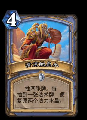 【清凉的泉水】这张卡在法术体系里就是一张0费抽二,更可怕的是在咒术洪流减费下甚至可以赚取费用,这一张卡就让法术体系变得可玩起来(法术法很缺过牌)。