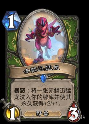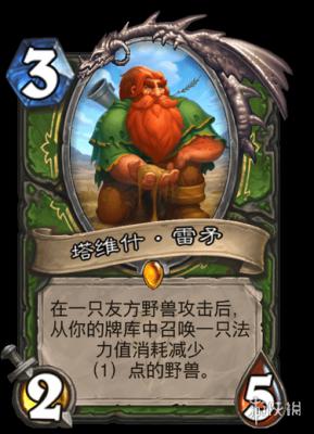 野兽体系加入了几张很不错的单卡。赤鳞迅猛龙是张优秀的1费野兽。塔维什·雷矛是很强的检索加铺场,配合驯服野兽(等级1)能在5费突袭加召唤3费野兽。