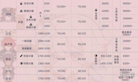 ※大部分角色圣遗物主词条都是:攻击沙、元素杯、暴击(暴伤)头,特殊情况已经在表中标出,部分角色数据统计中暂无。