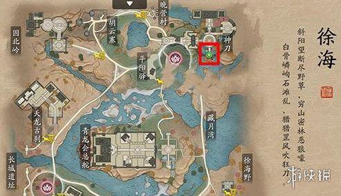 红色框框标记的就是神刀堂,也就是神刀职业的大本营。游戏中的每个门派都可以在地图上面找到,而徐海地图上面有神刀堂。