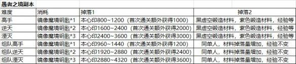 该副本的掉落物及货币“本心印”在活动商店中的兑换内容为“黑暗虚空三件套”——暗梦羽衣,暗梦金腰带,暗梦蔷薇带的锻造材料,活动商店将额外投放“收集器残件”和“晶蒺橙金石”。黑暗虚空三件套可以通过进化锻造而达到60级。
