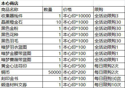没有拥有锻造图纸的新玩家,也可以通过活动商店购买图纸,对此三件套没有需求的玩家,可以通过“本心印”购买黄金心法符印,刻印金书,锻造材料文券等内容。
