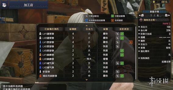拿上轻弩后不要着急出门,先到加工店选择自定义弩炮,把当前弩插个零件,一般建议消音器,可以减少后坐力,让射击更顺滑,如果后坐力已经最小了,就选择长枪管加攻吧。