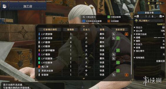 防具方面,早期可以头部使用硬甲龙头可以获得1级贯通弹强化。配合镰鼬轻弩使用。其余部位暂时随意,堆看破即可。等到可以制作倪泰里的时候,就把倪泰里头和胸做出来,然后再做一个毒妖鸟手,这样就能获得3级节弹的效果,有20%几率不消耗弹药,可以增加斩裂弹的有效携带量。剩下的腰和脚就堆 会心类的技能就行了。
