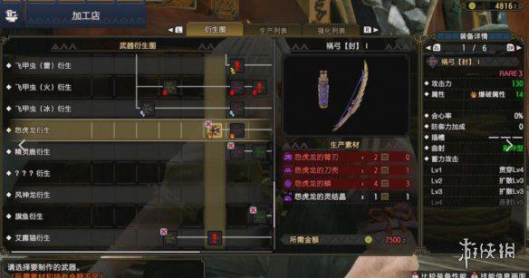 最后打了怨虎龙的话可以考虑做个怨虎弓,性能不错,属于散射箭型,爆破属性,对付怪物比较的通用。