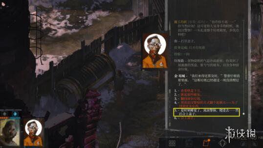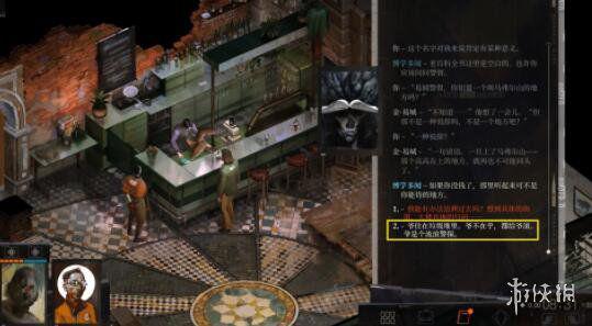 之后立马会跳出一个思维蓝点,点击开始发展思维,选择“我真的有家吗?”→“这个名字对我来讲肯定有某种意义”→“金警官,你知道一个叫马弗尔山的地方吗?”→“一种说辞?”→“爷住在垃圾堆里,爷不在乎。都给爷滚,爷是个流浪警探。”