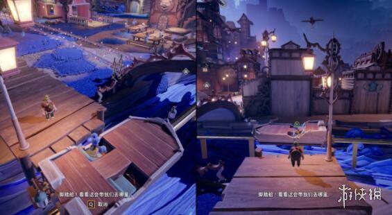 来到室外的小镇广场区域(与平台游戏奇才同区域),找到位于小镇中央区域的小河上的一艘双人船。共同划船沿轨道会到达一个小屋,进入小屋即可。(塞尔达彩蛋警告)。