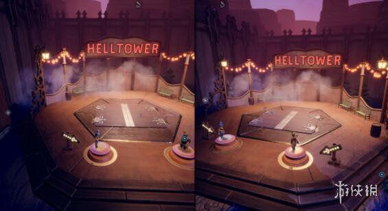 来到室外的小镇广场区域(与三角力量同区域),一路走到最底层,会看到“HELLTOWER”标识。两名玩家同时按下标识前方的两个按钮,会有一个有一定难度的爬塔游戏,一路跳台到最顶层即可。