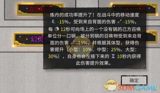 在《鬼谷八荒》3月30日凌晨0点的更新当中加了两个新的逆天改命,分别是振奋鼓舞和幻灵锅,这两个改命均要在金丹境以上才能获取。幻灵锅主要的效果是给召唤物增伤和减伤,比较适合木修,召唤流派非常好用的逆天;而振奋鼓舞比较鸡肋,主要是减伤,详细的数据请看下图。