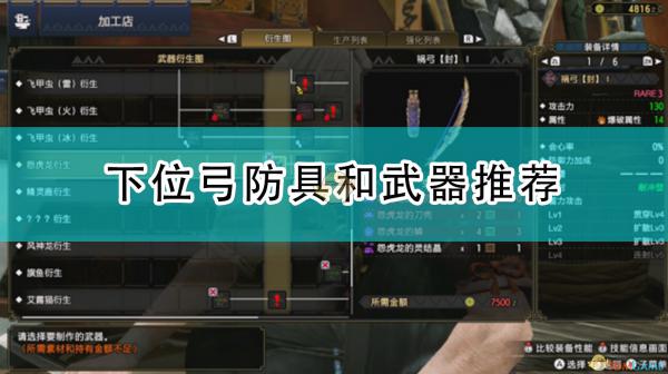 《怪物猎人:崛起》下位弓防具和武器推荐: