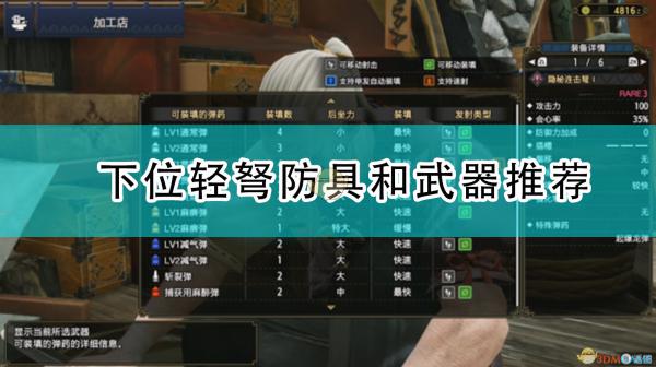 《怪物猎人:崛起》下位轻弩防具和武器推荐: