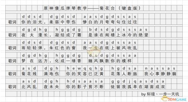 在《原神》这款游戏中,更新了一个叫做风物之琴的东西。玩家可以使用这小道具来弹奏出美妙的乐曲。这篇《原神》菊花台琴谱分享就为大家带来了菊花台这首曲目的简谱,还有键盘上的对应按键,有需要的小伙伴就来看看吧。