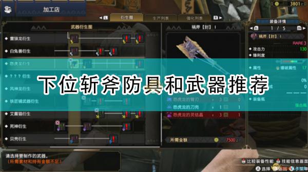 《怪物猎人:崛起》下位斩斧防具和武器推荐: