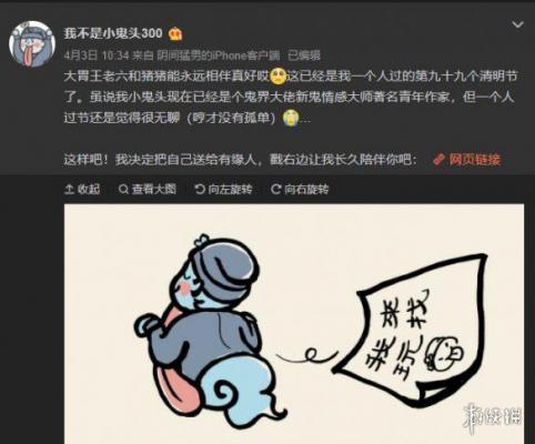 在微博搜索我不是小鬼头300,今日他的微博,在微博制定有个链接,点进入会跳到一个有坟墓的画面。