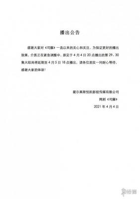 感谢大家对《司藤》一直以来的关心和关注,为保证更好的播出效果,介质正在紧急调整中,原定于4月4日20点播出的第29、30集大结局将延期至4月5日18点播出,请各位朋友一同耐心等待,感谢大家的体谅!