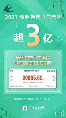 清明档票房破3亿创新高,4月4日消息,根据灯塔实时数据显示,截至4月3日21时36分,2021清明档单日大盘突破3亿元,清明档票房破3亿已经创新高,那么一起来看看吧。