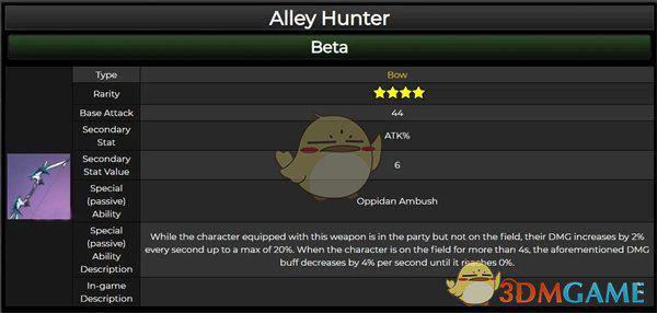 《原神》原神中的暗巷猎手这一弓箭,比较适用的角色是有输出空档期的弓箭角色。因为它的后台增伤特效需要角色处于后台才能够积攒。所以最适合的角色是感电流公子,他的e技能开完之后需要到后台回复。除此之外,小艾咪也是很好的使用对象。