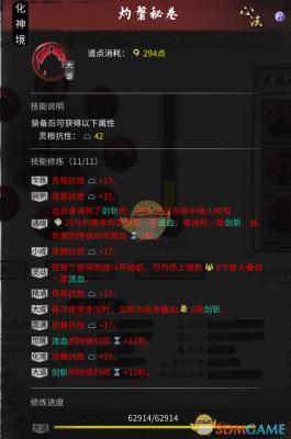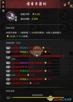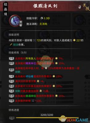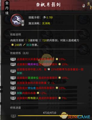 1:剑斩层数,默认的应该是6层剑斩,可能不对,没细看,我们这个玩法需要8层,功法的这个词条跟武技的这个词条必须有1个,达到8层剑斩,我们的玩法才能实现