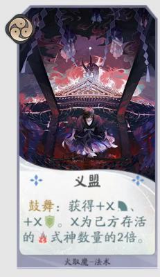义盟可以瞬间获得大量鼓舞,配合不知火的离殇之舞可以迅速养成鼓舞值,造成极大威胁。