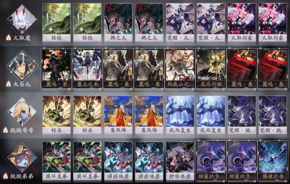 2.前期尽量配合棺击养成跳跳哥哥的大身材,二勾玉阶段尽可能地让式神使用过形态牌,以便三勾玉阶段配合火取剑豪。