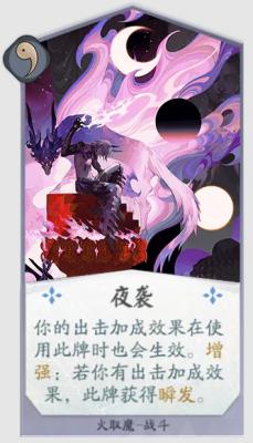 夜袭可以享受出击加成,并且可以瞬发使用。配合后期火取魔的形态来发动,可以给对手造成出其不意的伤害。