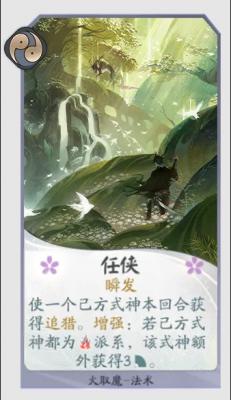 1.任侠是非常关键的一张解场牌,也是卡组为数不多的去除手段。用于处理对手有解场能力的式神,再用高身材的式神站场形成压制。