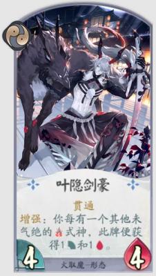 叶隐剑豪身材最大为7-7,自带贯通,是火取魔的强力形态。不仅可以形成场面压制,还能用来抢血,是火取魔中期的主要战斗依靠。