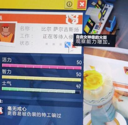 2.自由女神像的火炬就很玄幻了,''观察能力增加'',(放在门卫大哥那儿?)查看战利品旁边的喽啰看他的buff就知道战利品效果了。