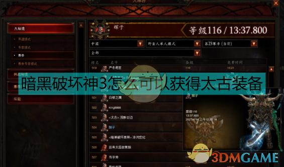 暗黑破坏神3太古装备非常强,不过爆率很低,老玩家一般都是通过做悬赏任务开箱子重铸来获得太古装备的,而新玩家往往不知道怎么获取。其实暗黑3对新玩家很友好,升70级就能直接获得一件太古,所以新玩家先升级就可以了。