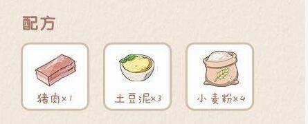 1、猪肉1块,土豆泥3个,小麦粉4包。